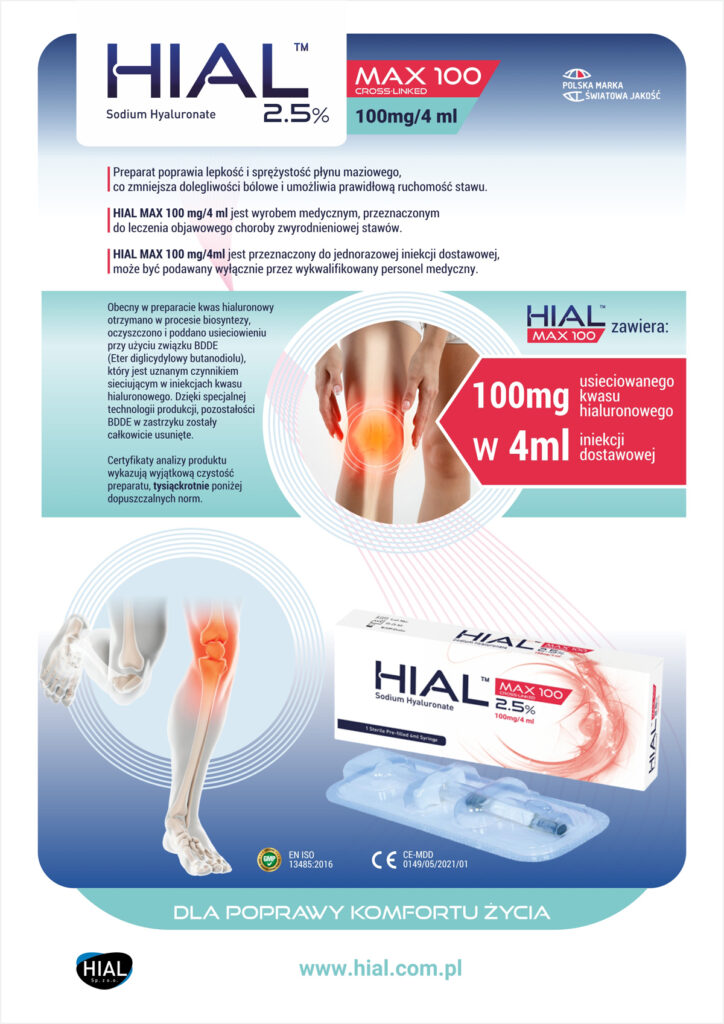 Sterylny wyrób medyczny przeznaczony do iniekcji dostawowej. Wyprodukowany przez fermentację mikrobiologiczną. Każda partia leków posiada certyfikat analizy mikrobiologicznej , chemicznej i fizycznej.